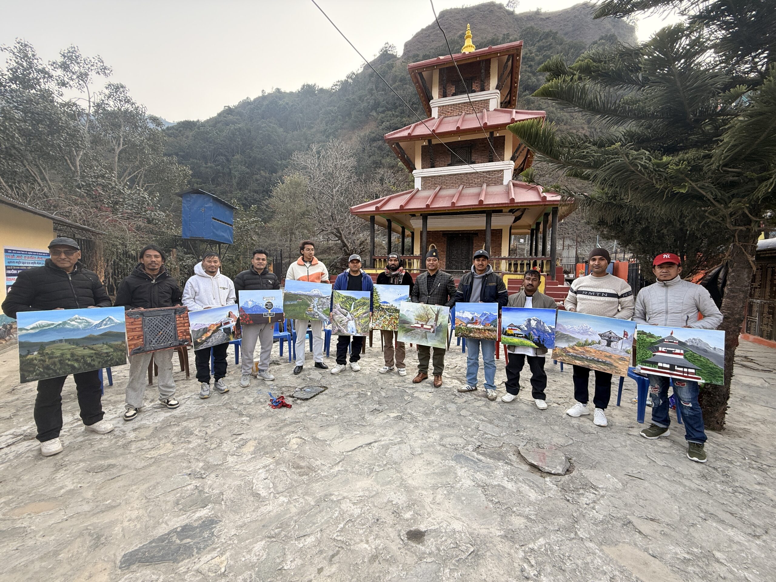 पेन्टिङमा जमेका यूवाहरू चित्रकाला कार्यशाला गोष्ठी