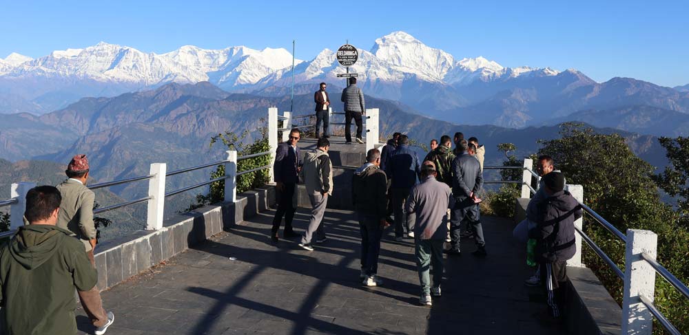बिहानै सूर्योदयसंगै देखिने हिमालहरू चाँदी झैँ टल्किन्छन् । त्यही मोहित सूर्योदयसंगै दर्जन बढी हिमाल हेर्न अहिले…..