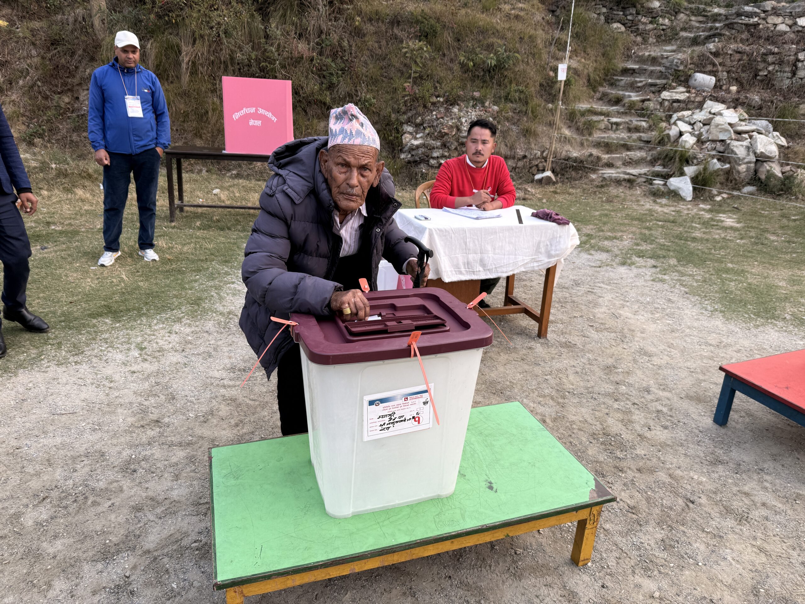 १०१ वर्षीय वृद्धले रि बहादुर छन्त्याल गर्नुभयो मतदान